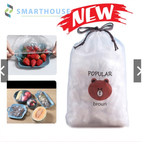 Giới thiệu [FREESHIP] Màng bọc thực phẩm đa năng có chun co giãn thông minh ( Set 100 cái tặng kèm túi gấu dễ thương)