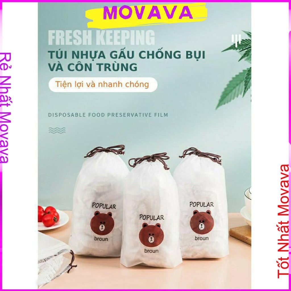 [FREESHIP] Màng bọc thực phẩm đa năng có chun co giãn thông minh ( Set 100 cái tặng kèm túi gấu dễ thương)