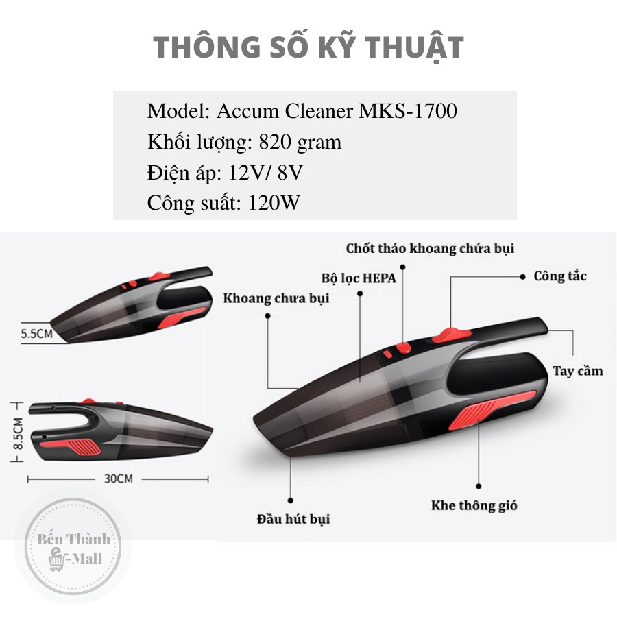 Giới thiệu ✈️[Freeship] Máy hút bụi ô tô cầm tay đa năng Accum Cleaner MKS-1700 [Bản không dây & có dây]