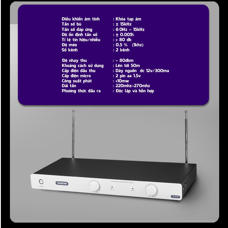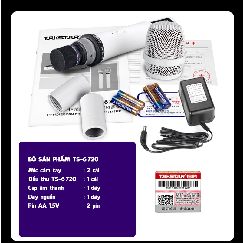 Giới thiệu (FREESHIP) Mic không dây VHF Takstar 6720 đen/trắng bảo hành 24 tháng cao cấp đổi trả miễn phí 7 ngày uy tín người dùng