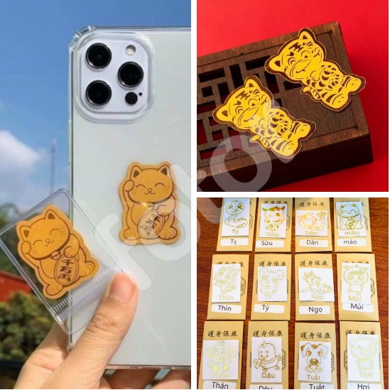 [FREESHIP] MIẾNG DÁN ĐIỆN THOẠI 12 CON GIÁP - TIỂU HỔ - MÈO THẦN TÀI MẠ VÀNG