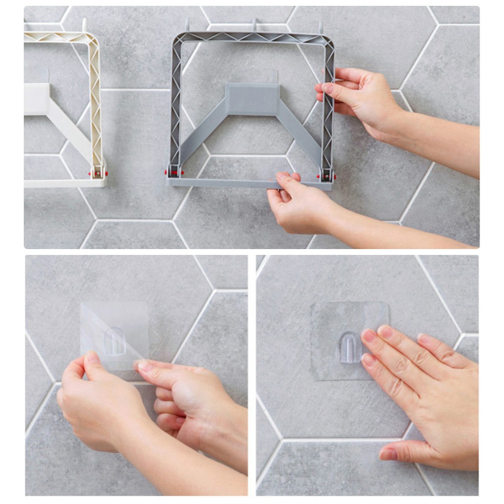 [FREESHIP] MÓC, GIÁ TREO CHẬU, THAU, RỔ DÁN TƯỜNG 3 MÓC XẾP GỌN (8938)