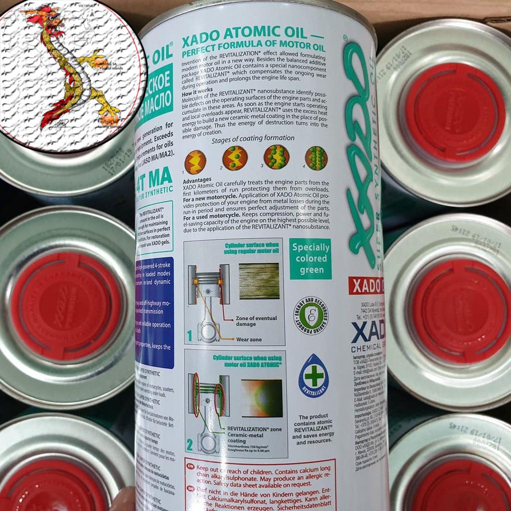 Giới thiệu [FreeShip] Nhớt Xado ATOMIC 10W40 4T MA - Nhớt xe số xe côn tay xado 10W40 chứa các nguyên tử phục hồi động cơ lon 1L