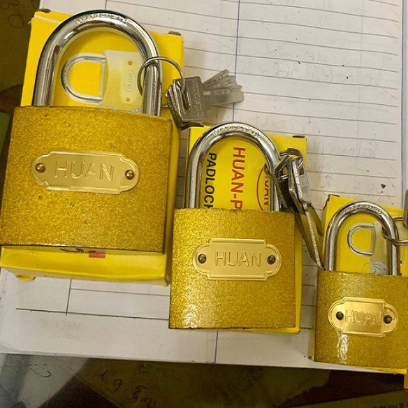 Ổ khóa của HUAN hợp kim màu vàng 3 chìa nhiều size*** Khách lưu ý kích thước phù hợp với cửa chốt nhà để chọn ổ khóa tương ứng khách nhé
