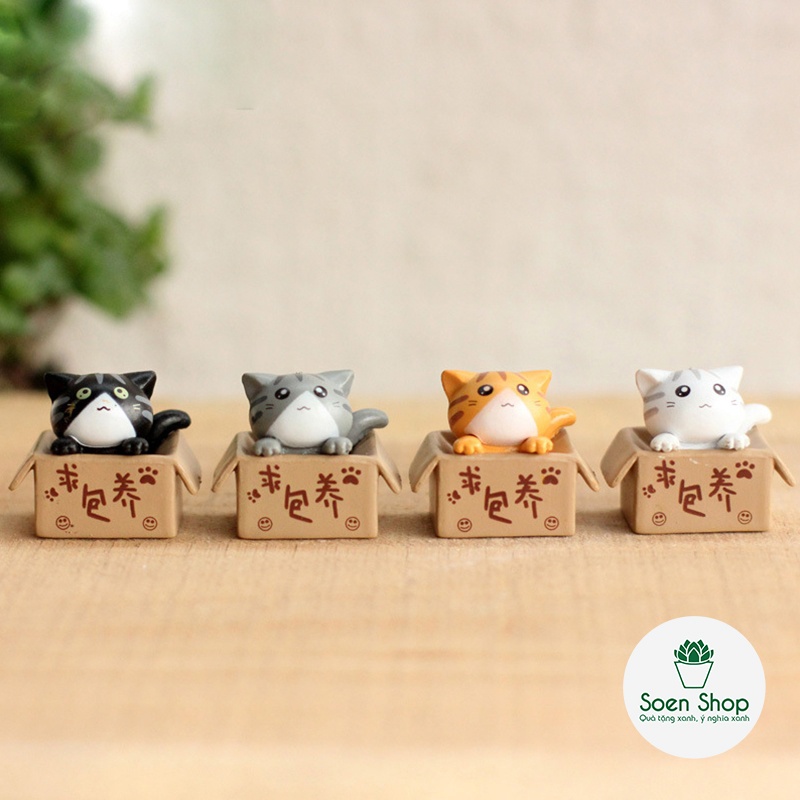 |FREESHIP| Phụ kiện MÈO TRONG HỘP - Phụ kiện trang trí cây xanh để bàn làm việc, mô hình trang trí cho bể cá, tiểu cảnh