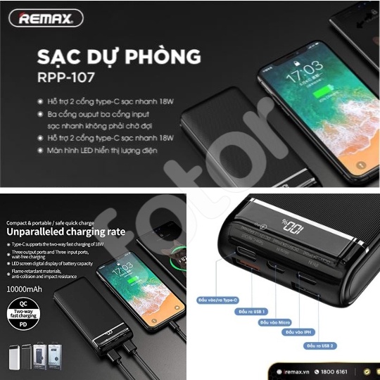 Giới thiệu [FREESHIP] PIN SẠC DỰ PHÒNG 18W QC 3.0 REMAX RPP-107 (10.000mAh)