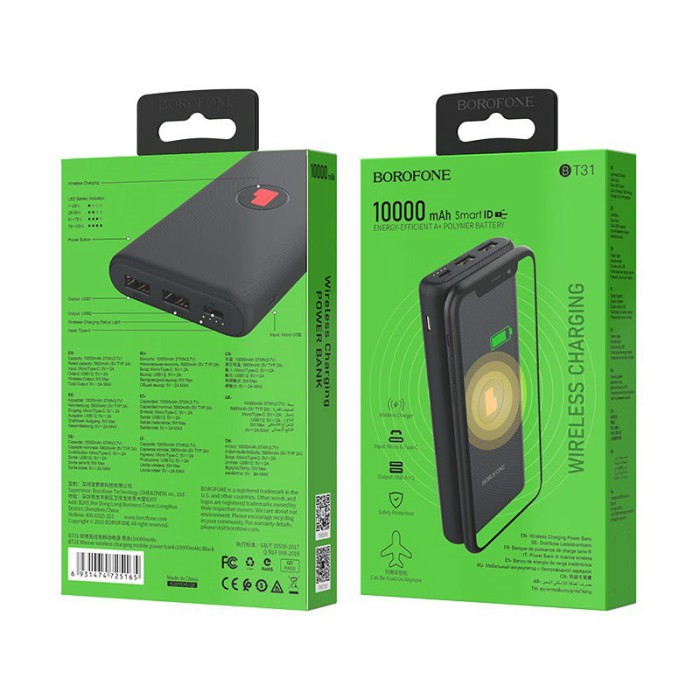 Pin Sạc Dự Phòng Không Dây BOROFONE BT31, BT-31 - Dung Lượng 10000mAhThông số kỹ thuật: