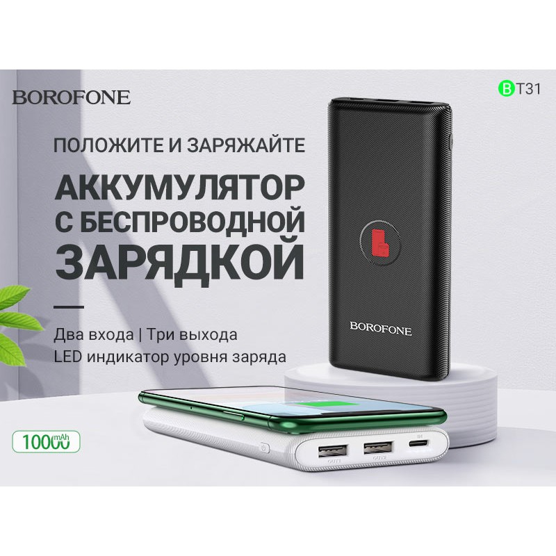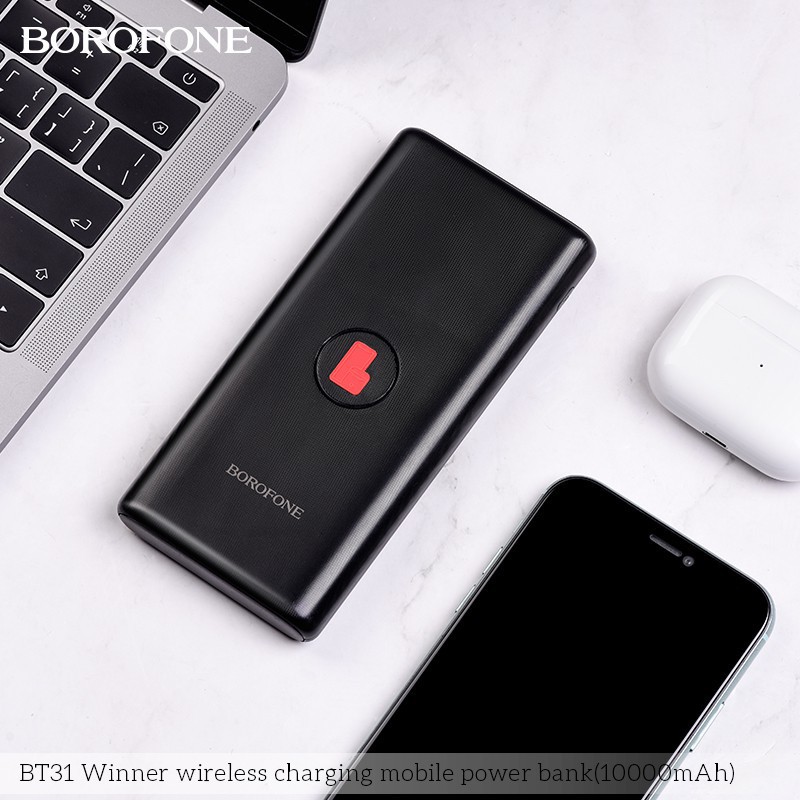Pin Sạc Dự Phòng Không Dây BOROFONE BT31, BT-31 - Dung Lượng 10000mAh mang thiết kế sang trọng, lịch lãm với dung lượng cao giúp người dùng có những trải nghiệm đẳng cấp cho. Sạc dự phòng không dây BT31 bắt kịp xu hướng sạc không dây cao cấp, hiện đại nhất ngày nay, với thiết kế gọn nhẹ, sang trọng, giúp sạc pin nhanh hơn, tiện lợi, dễ dàng sử dụng và mang theo bất cứ đâu.