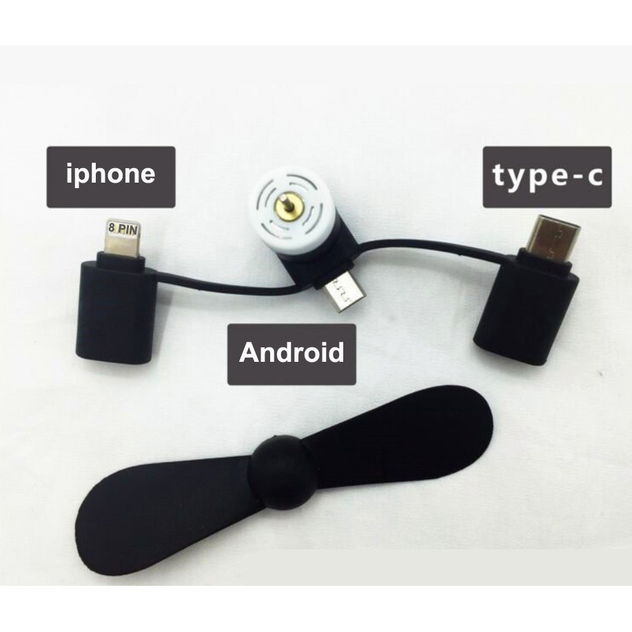 - Quạt mini micro USB dùng năng lượng trực tiếp từ pin của điện thoại Android hoặc iphone.