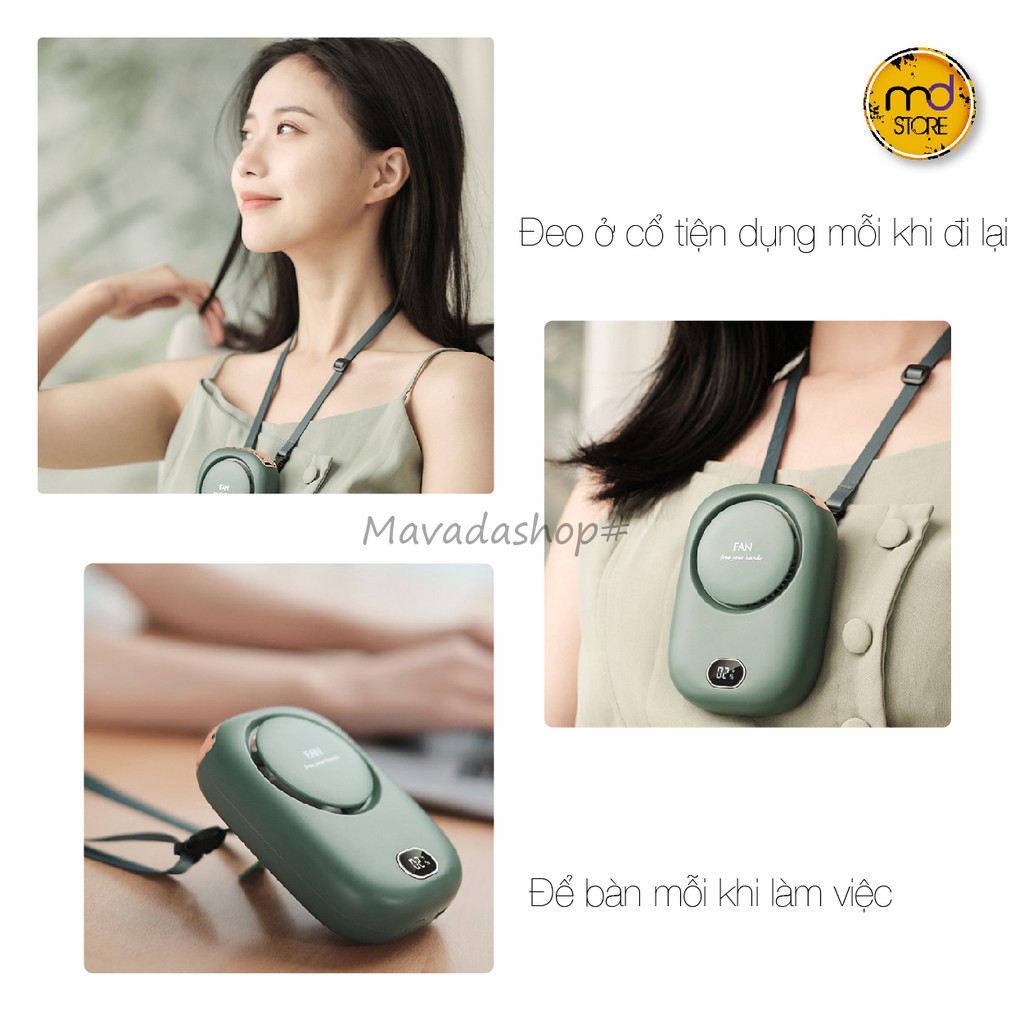 Thông tin sản phẩm: Quạt mini đeo cổ cầm tay để bàn màn hình LED hiển thị dung lượng PIN***CÔNG DỤNG: