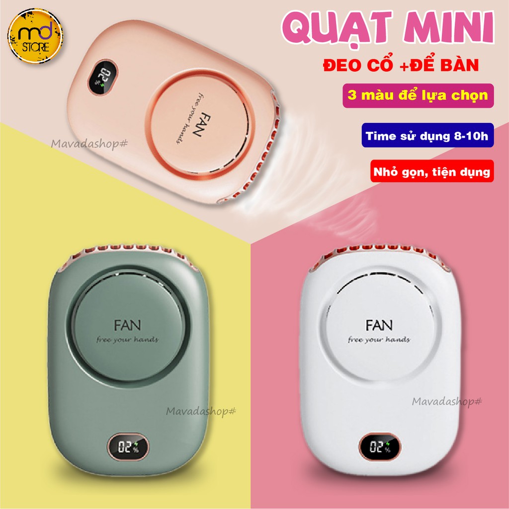 Giới thiệu [FREESHIP] Quạt đeo cổ mini cầm tay, quạt để bàn màn hình LED hiển thị dung lượng PIN