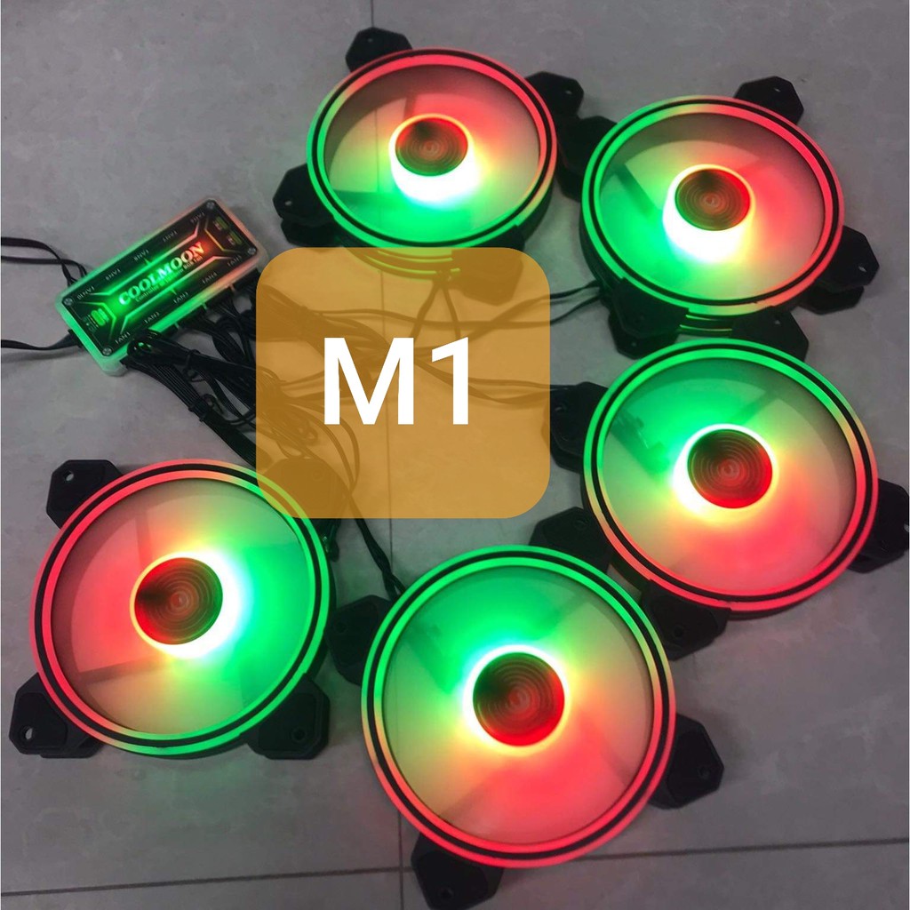 - Sản phẩm bao gồm: 05 Quạt Coolmoon Dualring RGB, 01 HUB (có thể lắp tối đa 10 Fan), 01 Điều khiển màu sắc từ xa, bộ đủ ốc bắt Fan.