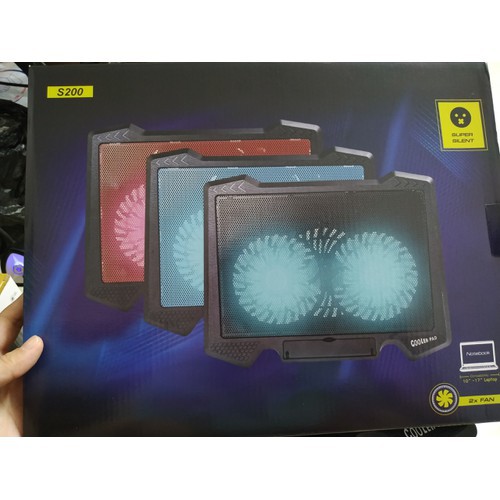Đế tản nhiệt laptop S200 2 quạt, fan laptop S200 làm mát cực nhanh.bảo hành 3 thángĐế tản nhiệt Laptop Cooling Pad S200 - 2 quạt, đèn led, đế nâng laptop từ 10-17 inch