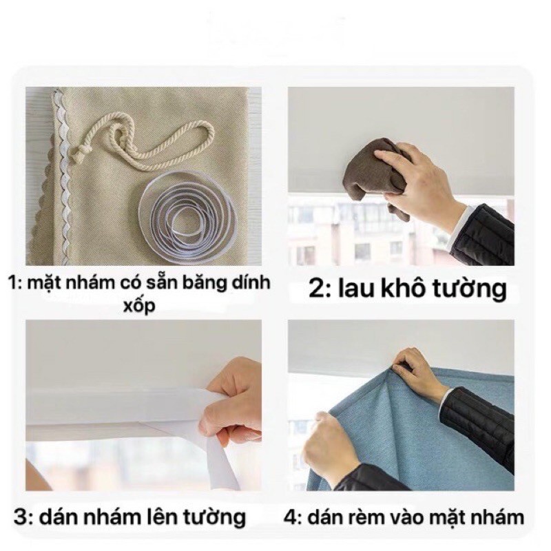 [Sẵn] Rèm cửa dán tường chống nắng, rèm cửa dán trang trí cửa sổ - phòng khách dễ dàng lắp đặt không khoan đục❤️ Kiểu cài đặt: khóa băng gai