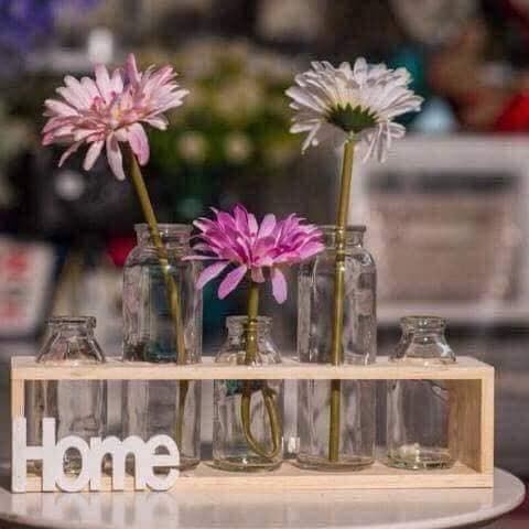 🌺🌺Sản phẩm gồm kệ gỗ HOME và 5 lọ hoa kích cỡ khác nhau.