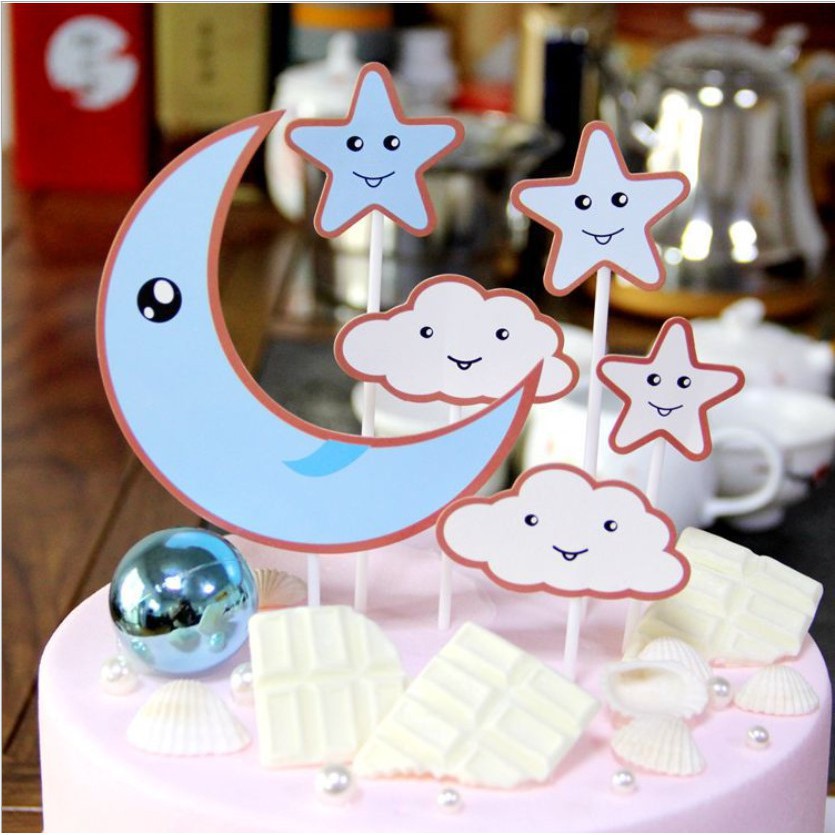 Giới thiệu [FREESHIP❤️] Set cắm giấy mây trăng sao mẫu 1 - Trang trí bánh - HD Shop