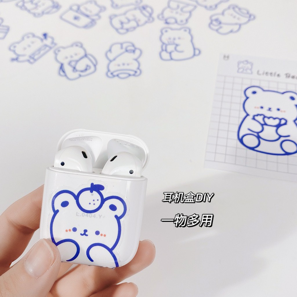 FREESHIP/Set hình dán trang trí điện thoại case airpod laptop DIY không thấm nước màu xanh phong cách Nhật Bản