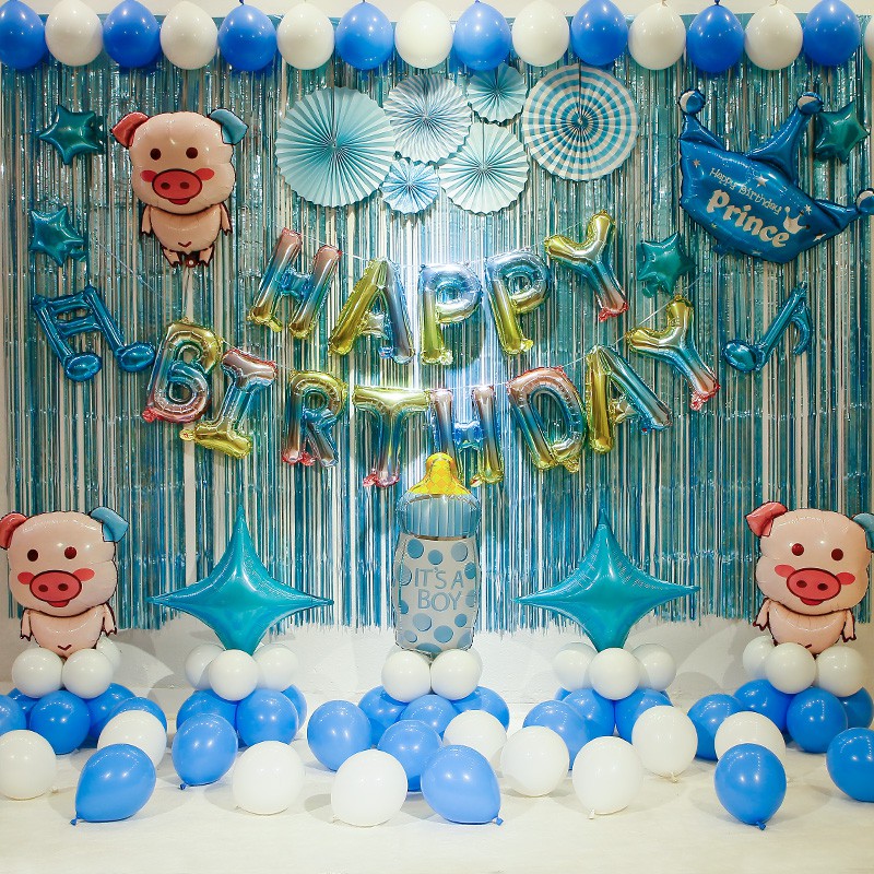 Set trang trí sinh nhật cho bé tuổi heo bé trai, bé gái❤️FREESHIP❤️xanh+hồng kèm Bơm và keo dán💞 Thông tin sản phẩm :