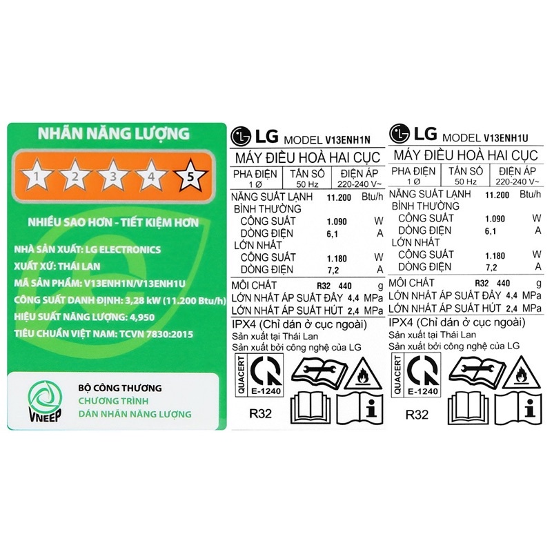 Thông số kỹ thuật chi tiết Máy lạnh LG Inverter 1 HP V10ENW