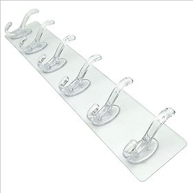 Thanh 6 móc treo đồ dán tường siêu dính chịu lực đa năng