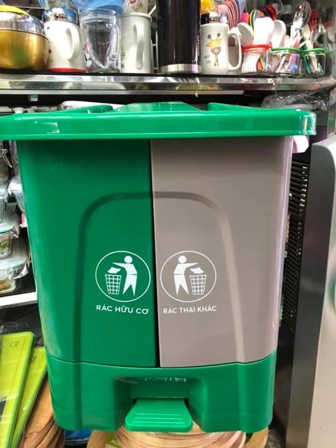 Có 2 ngăn tiện lợi khi bạn phân loại rác hữu cơ và vô cơ. Thiết kế thông minh đạp chân nắp bật giúp bạn bỏ rác mà không cần dùng tay mở nắp