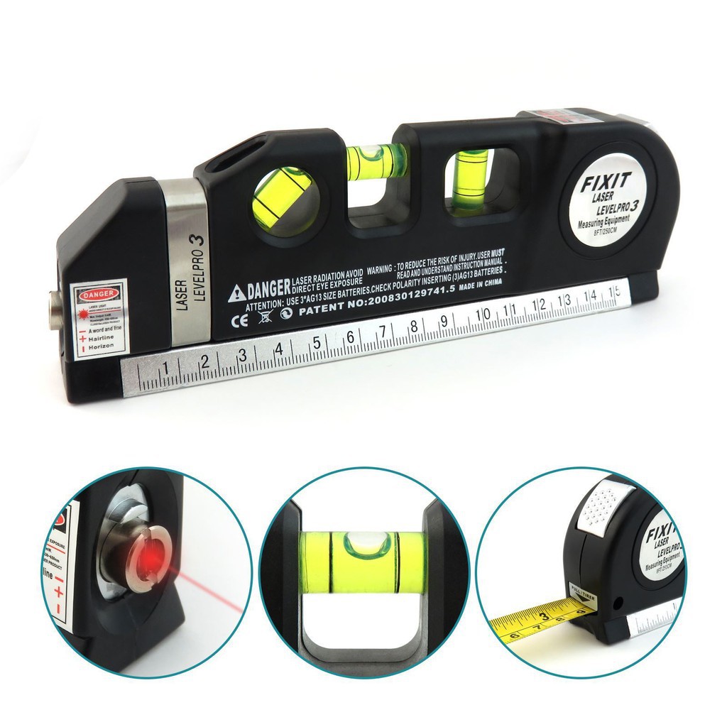 - Thước Đo Laser Nivo Tiêu Chuẩn Nâng Cao.- Nhiều chức năng: ni vô nằm, đứng, xiên 45 °, thước rút 2.5m, thước ngắn 15cm, laser đo cân bằng ngang.