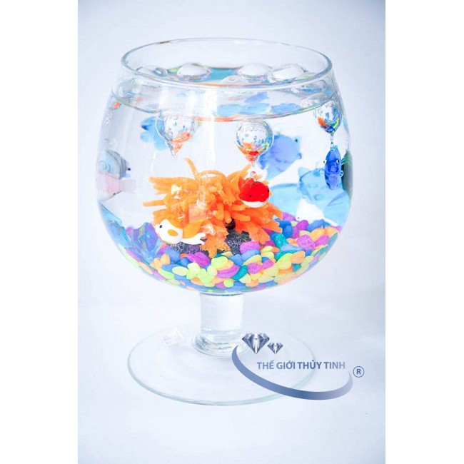 Bể cá thủy tinh được làm bằng thủy tinh trong suốt với hình dáng đặc biệt là bể cá có chân đế dưới bầu to và trên miệng nhỏ lại. Thiết kế như vậy không những giúp bể cá thủy tinh trông đẹp mắt mà còn thuận tiện cho việc vệ sinh.