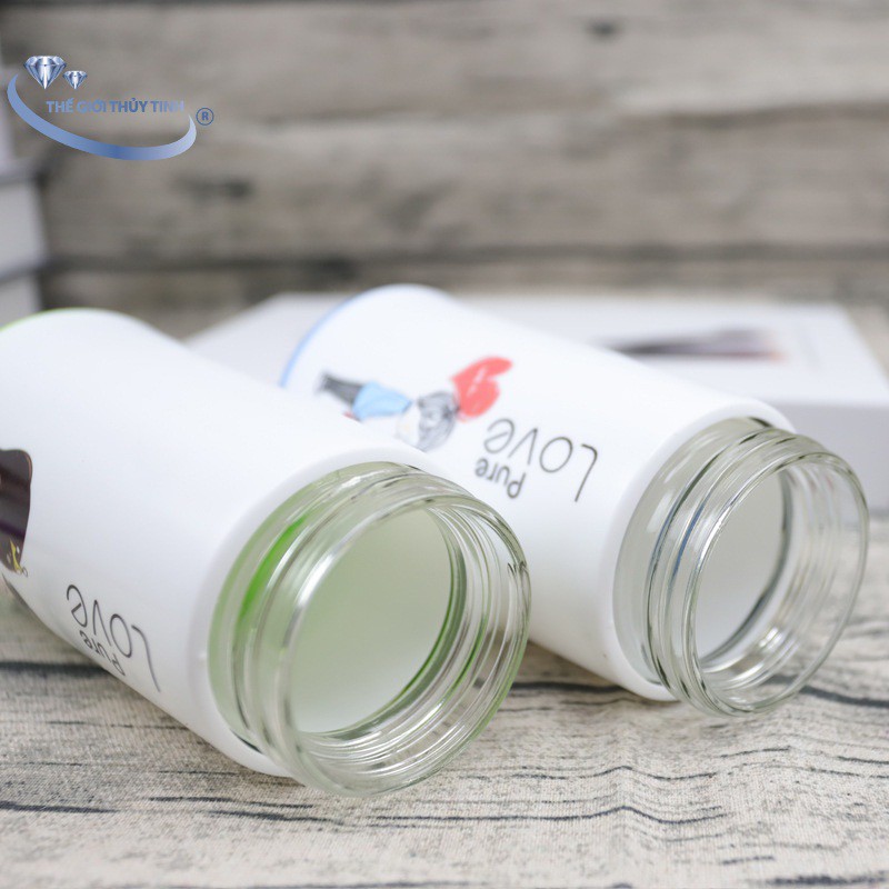 Giới thiệu FREESHIP TOÀN QUỐC 50K - Bình Nước Thủy Tinh Bọc Nhựa Couple 350ML – Họa Tiết Màu Ngẫu Nhiên