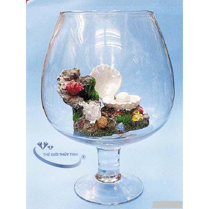 Bể cá thủy tinh được làm bằng thủy tinh trong suốt với hình dáng đặc biệt là bể cá có chân đế dưới bầu to và trên miệng nhỏ lại. Thiết kế như vậy không những giúp bể cá thủy tinh trông đẹp mắt mà còn thuận tiện cho việc vệ sinh.