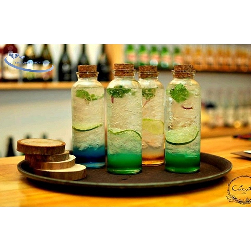 Chai thủy tinh tròn nút bần 350ml được cửa hàng trà sữa quán cà phê rất ưu chuộng nhờ kiểu dáng bắt mắt và an toàn chất lượng.