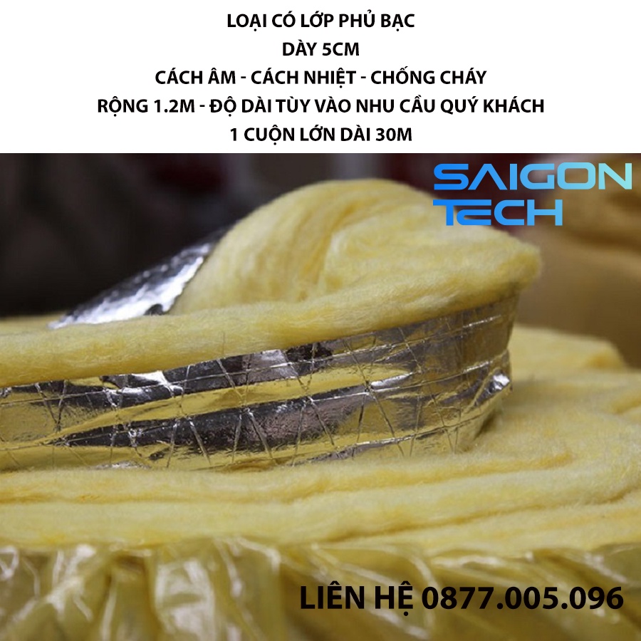 🔥[Freeship toàn quốc] Bông thủy tinh cách âm, cách nhiệt và chống cháy - Có mặt bạc - Ngang 1.2m – Tùy chọn độ dài Saigon Techzone phân phối chính thức