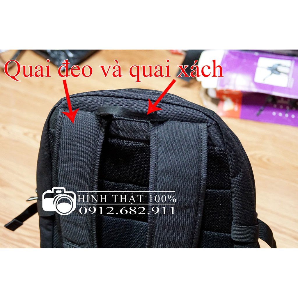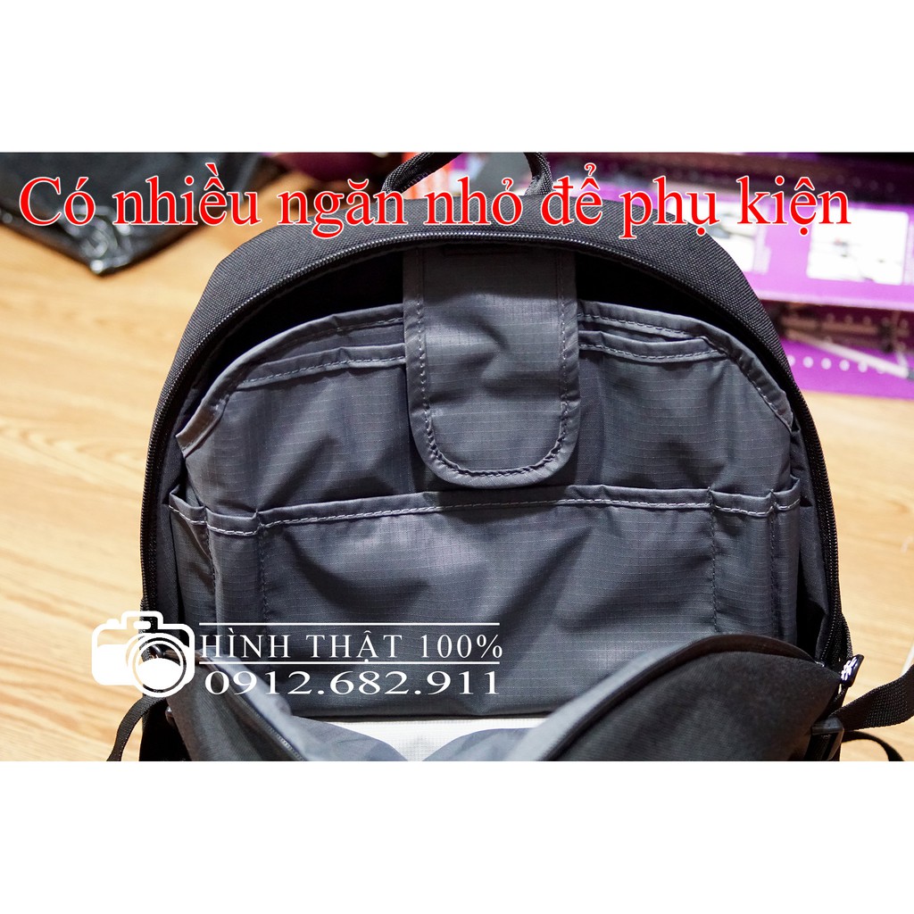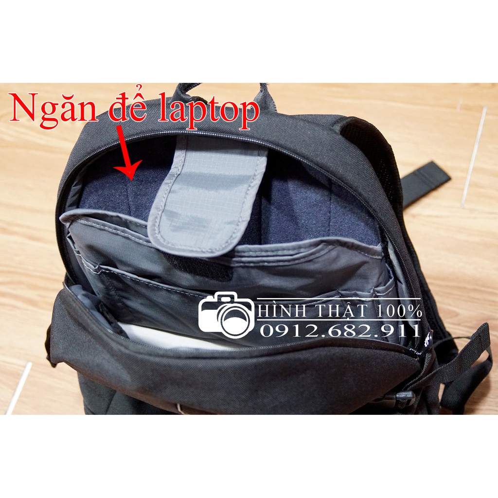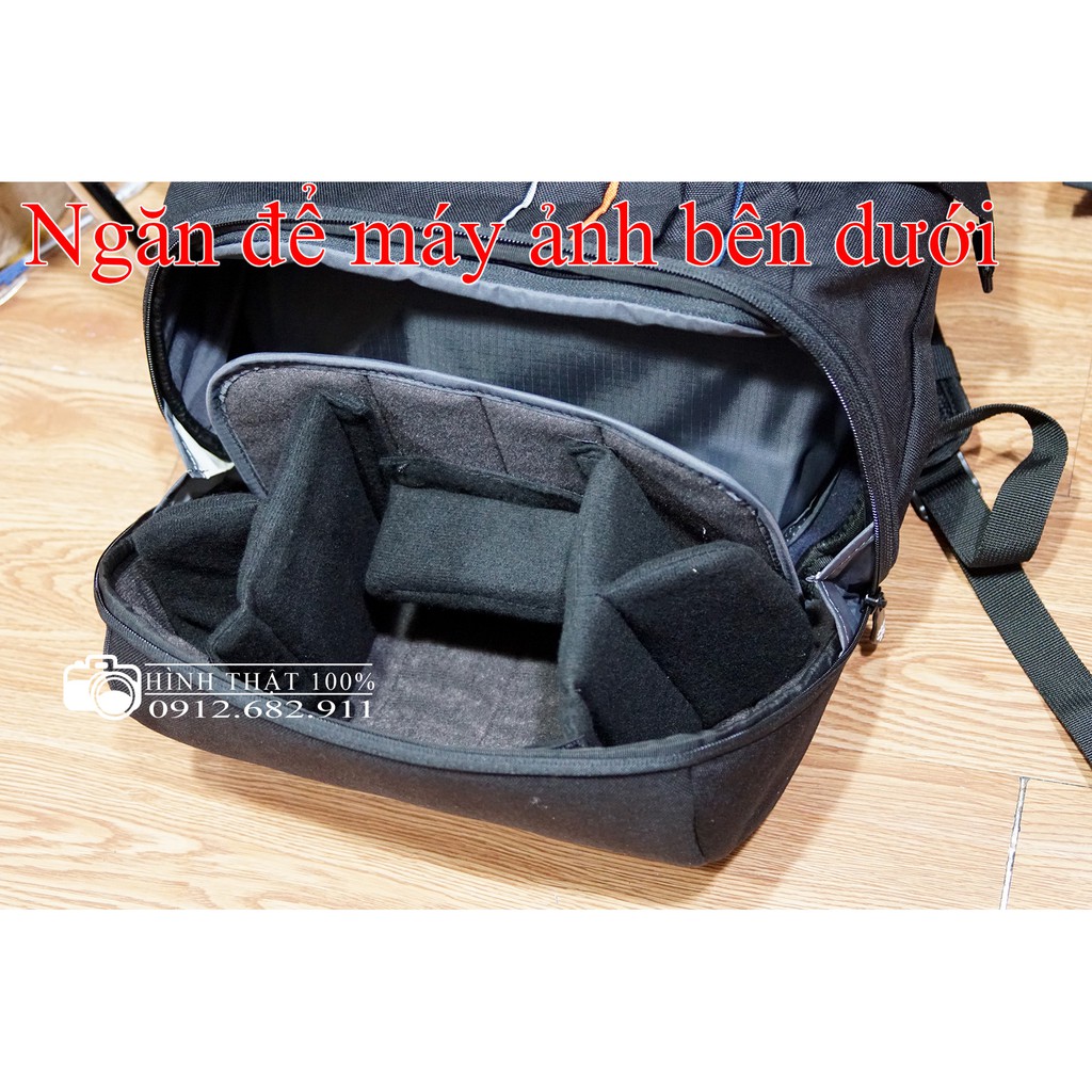 - Ngăn laptop fix với máy 15.6 inch. Phía trên có thể để đồ cá nhân. Ngăn chưa máy chụp hình phù hợp để 1 body, 2 len tầm trung và 1 len ngắn, Fash.