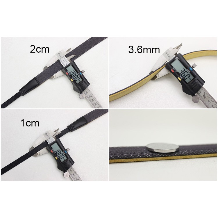 Bản rộng 2cm, mặt trong lót da chống trượt. Chiều dài thân dây 68cm, thích hợp với hầu hết các máy ảnh DLSR. Đoạn kết nối với máy ảnh dài 42cm x 2.