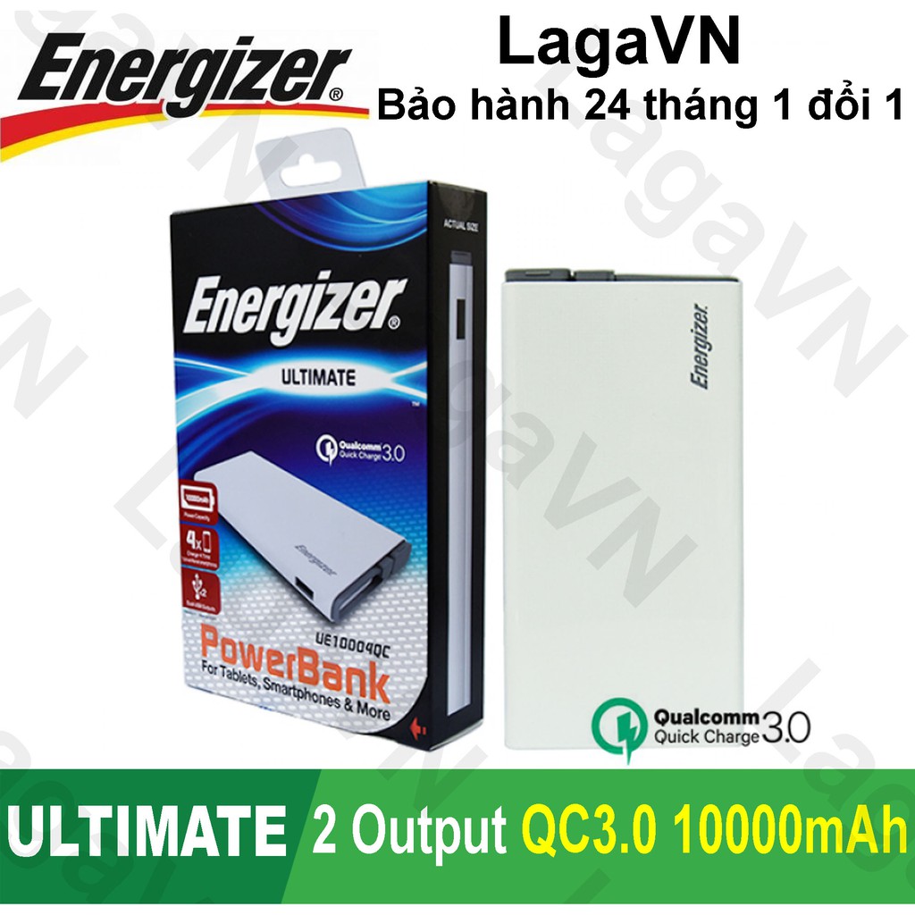 Giới thiệu [Freeship toàn quốc từ 50k] Pin sạc dự phòng Energizer 10000mAh Li-Po 2 cổng Output Quick Charge 3.0 - UE10004QC (Trắng)