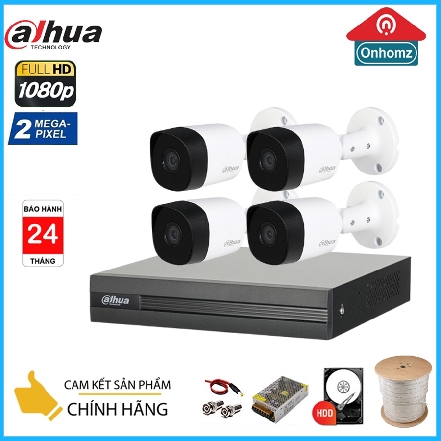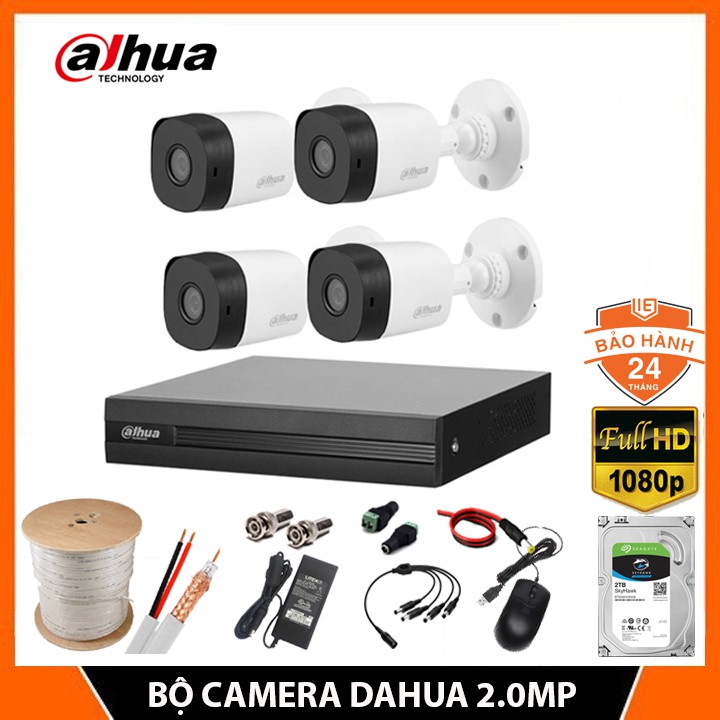 TECH24H xin giới thiệu đến quý khách hàng lắp đặt Trọn bộ 4 Camera Dahua 2.0MP Full HD 1080P phù hợp với các dự án vừa và nhỏ như: lắp đặt camera giám sát cho gia đình, lắp đặt camera giám sát cho của hàng, lắp đặt camera quan sát cho công ty, lắp đặt camera cho công ty, theo dõi nhân viên, người giúp việc, giám sát an ninh, chủ động bảo vệ tài sản của gia đình, công ty, kho xưởng...- Bộ sản phẩm đã bao gồm cáp tín hiệu đồng trục liền nguồn loại tốt + Nguồn tổng + Phụ kiện lắp đặt + ổ cứng