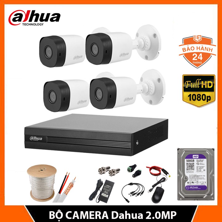 [FREESHIP❤️]Trọn Bộ Camera giám sát DAHUA 2.0MP- fhd 1080P Chính hãng, Đủ bộ 4 mắt FHD, Kèm HDD 500GB,Đủ phụ kiện