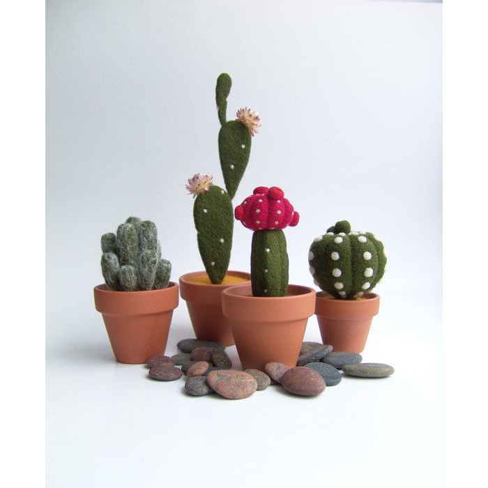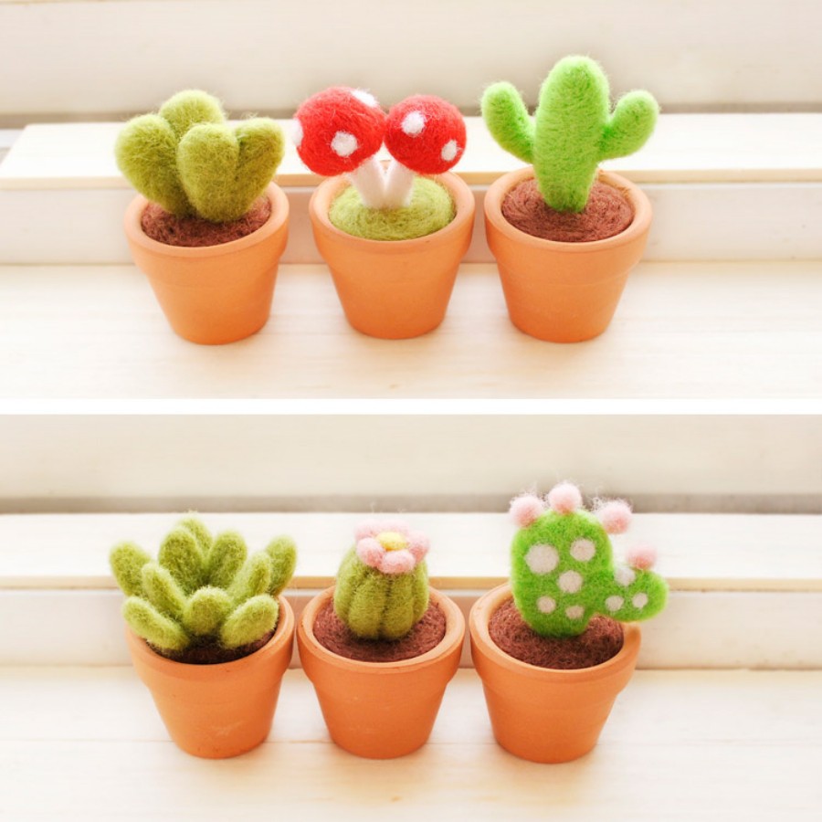 Bạn yêu thích cây cảnh nhưng không có thời gian chăm sóc. Bạn muốn không gian làm việc trở nên tươi xanh hay trang trí một góc nhỏ ngôi nhà của bạn. Lặt Vặt mang tới cho bạn một bộ Kit tự tay làm lấy từ len chọc gồm 03 chậu cây cảnh xinh đẹp, với chất liệu len lông cừu cùng với chậu đất nung bền vững. Kit len chọc hình cây xương rồng sẽ trang trí không gian của bạn một cách đẹp đẽ
