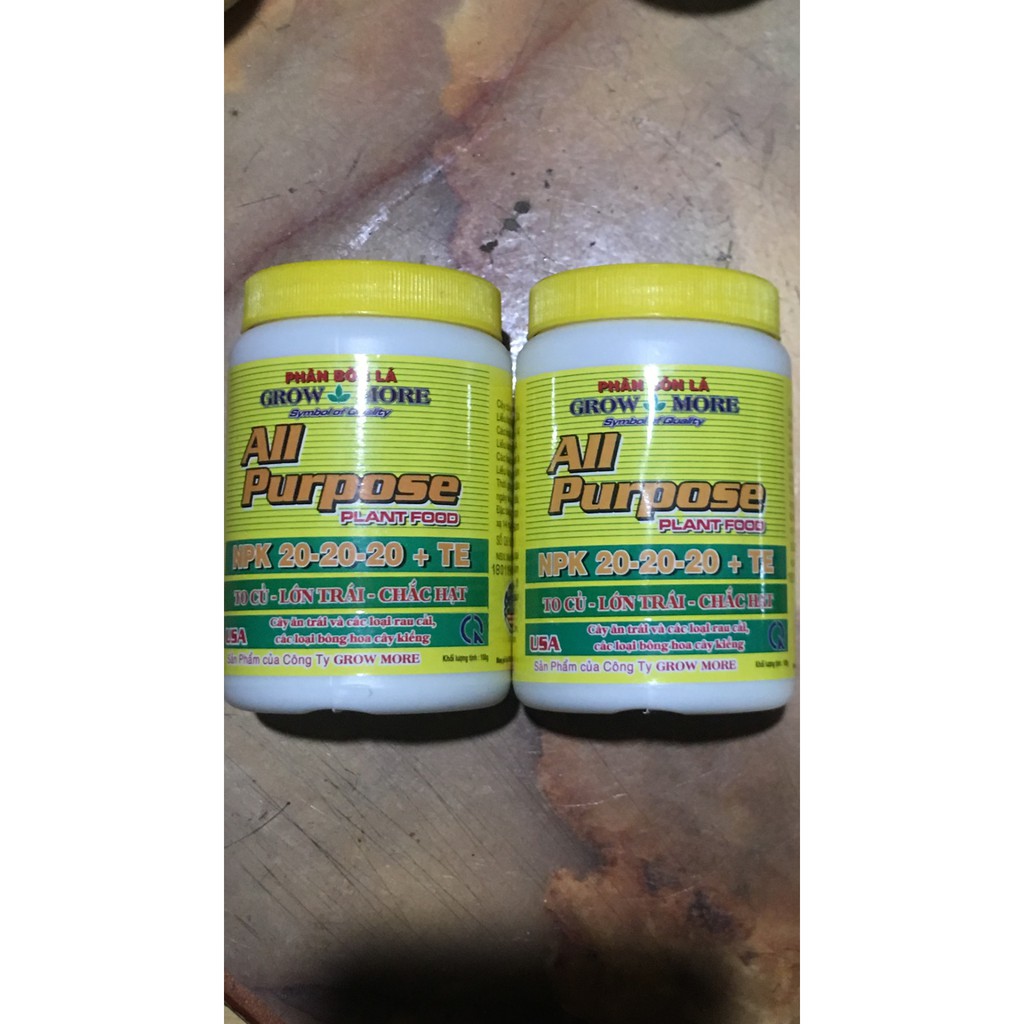 Phân bón lá cao cấp NPK Growmore 20-20-20 hộp 100gGrowmore 20-20-20 thành phần gồm N: 20%, P2O5 20%, K2O 20%, các nguyên tố vi lượng: Cu, Zn, Mn,...