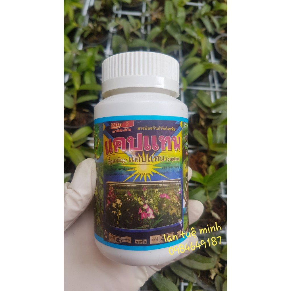 THUỐC TRỪ BỆNH HẠI CÂY CAPTAN lọ 50g- hàng nhập khẩu Thái Lan, đóng gói tại Việt NamĐặc trị: Đốm lá, thối lá, thối rễ,....các bệnh cây do nấm. Đặc biệt trị dứt điểm bệnh đốm lá trên địa lan, thối thân thối ngọn lan hoàng thảo, đốm lá hại hoa hồng
