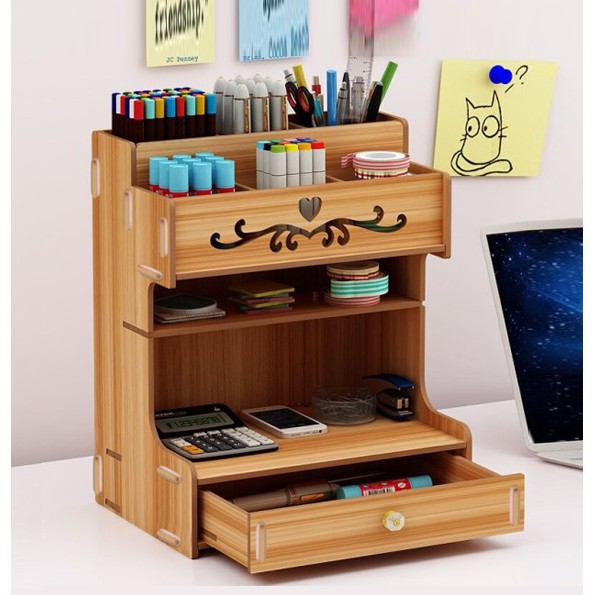 [FREESHIP] Tủ Kệ gỗ B13 đựng bút văn phòng phẩm có ngăn kéo B13 để bàn - Kệ Văn phòng phẩm Khalik
