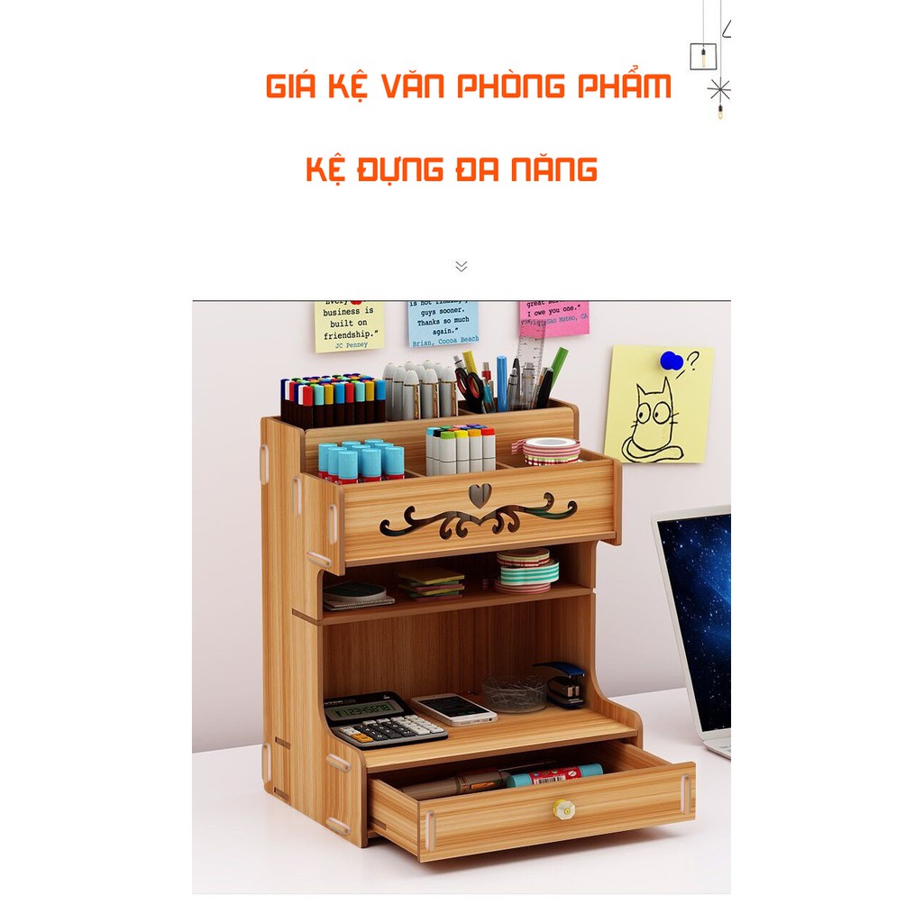 Giới thiệu [FREESHIP] Tủ Kệ gỗ B13 đựng bút văn phòng phẩm có ngăn kéo B13 để bàn - Kệ Văn phòng phẩm Khalik