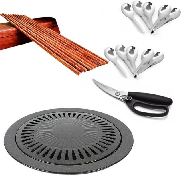 [Freeship] Vỉ nướng men chống dính TẶNG [1 kéo cắt gà + 10 muỗng canh + 10 đôi đũa dừa]