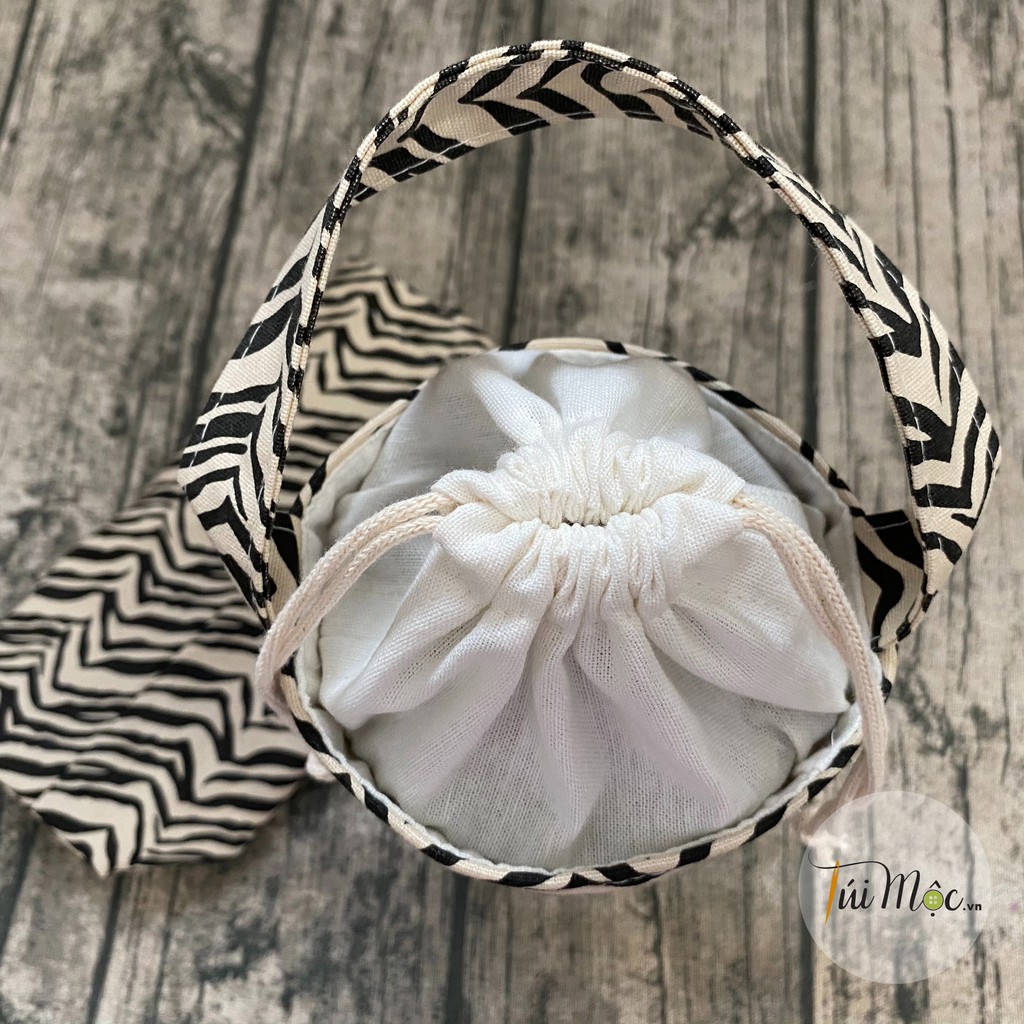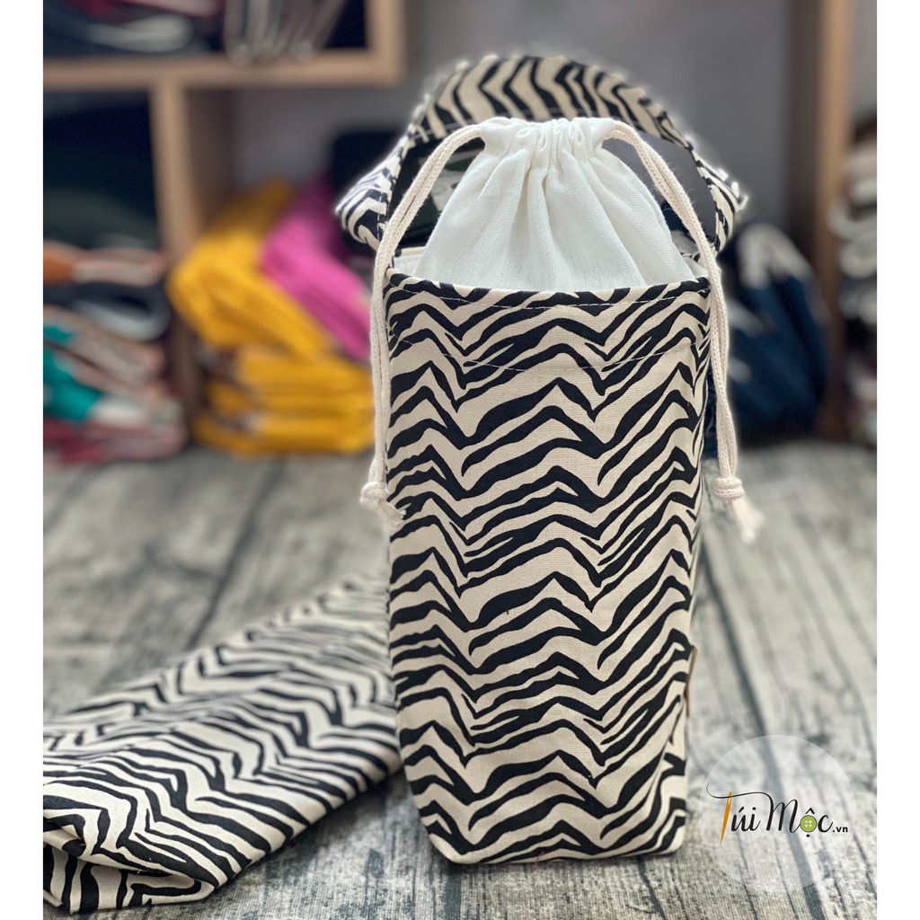 (FREESHIP❤️) [VIDEO] Túi vải BỐ COTTON đựng Ly Giữ Nhiệt/Bình Giữ nhiệt/Bình Nước họa tiết SỌC VẰN ĐEN ĐỘC-LẠ!!!