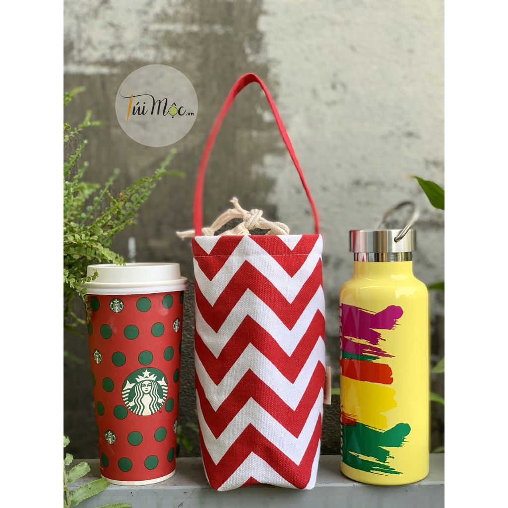 Nhà cửa & Đời sống > Bộ đồ bàn ăn > Bình nước & phụ kiện || [FREESHIP❤️](VIDEO)Túi vải đựng Ly giữ nhiệt/Bình Giữ Nhiệt/Bình nước họa tiết Zic-zắc 2 lớp, có dây rút!Còn hàng