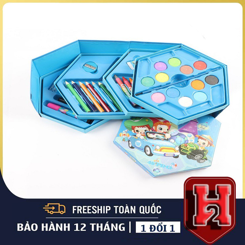 FREESHIPHộp Màu 46 Món,Thiết Kế 4 Ngăn Thông Minh,Màu Bền Đẹp,Không Gãy,Nhòe,Phù Hợp Với Mọi Lứa Tuổi