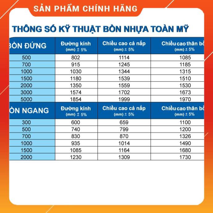 Giới thiệu (FREESHIPP) Bồn nhựa nằm Toàn mỹ Eco, 100% nhựa nguyên sinh 300L - 1500L
