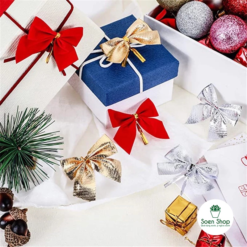 |FREESHIP|Phụ kiện NƠ ĐỎ GẮN trang trí Noel, Giáng sinh- Phụ kiện trang trí cây xanh để bàn làm việc, mô hình tiểu cảnh