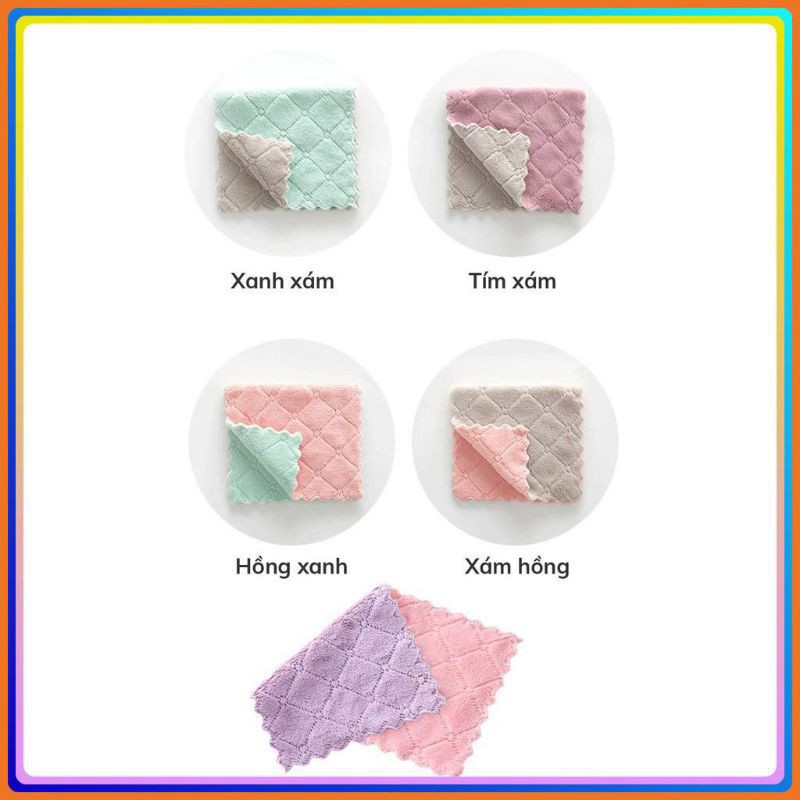 FREESIP_Set 5 Khăn lau bếp đa năng 2 mặt mềm mại thấm hút tốt, khăn lau bếp đa năng chống dính dầu mỡ nhanh khô