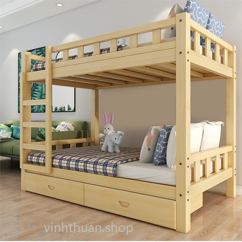 Giường tầng gỗ mộc giường đôi cao thấp trẻ em người lớn căn hộ nhỏ, ký túc xá, phòng trọgiường tầng gỗ mộc chắc chắn không chất gây hại, kiểu dáng đơn giản thanh lịch phù hợp với nhiều phong cách nội thất