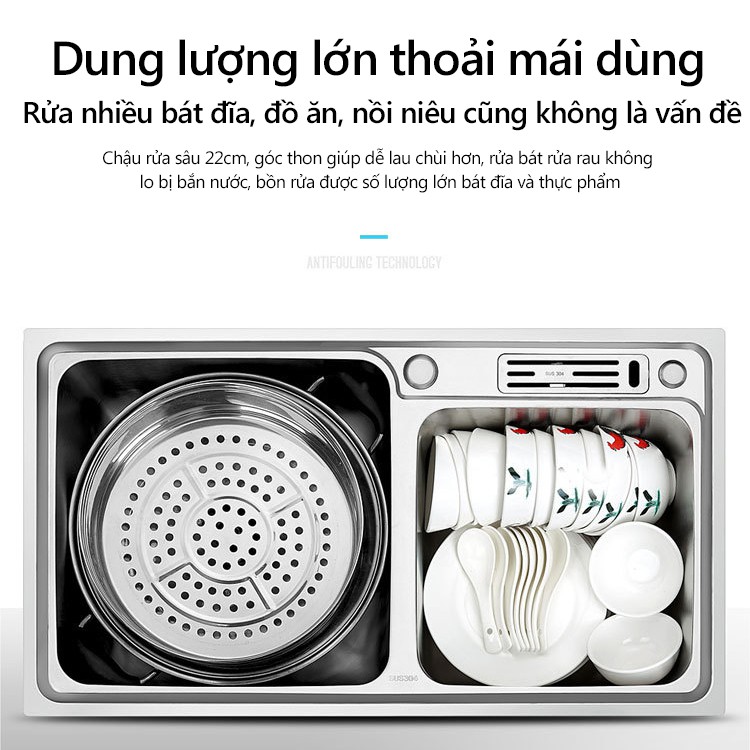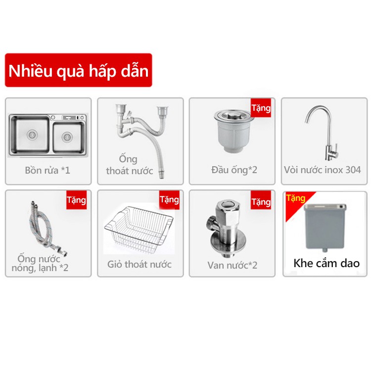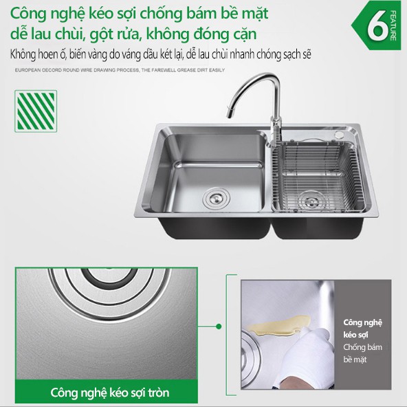 Nhà cửa & Đời sống > Dụng cụ chăm sóc nhà cửa > Miếng bọt biển, miếng chà vệ sinh || FU501 Chậu rửa chén bát, bồn rửa chén bát inox 304 không gỉ 2 ngăn có khe cắm dao, bồn rửa nhà bếp shopbenboCòn hàng